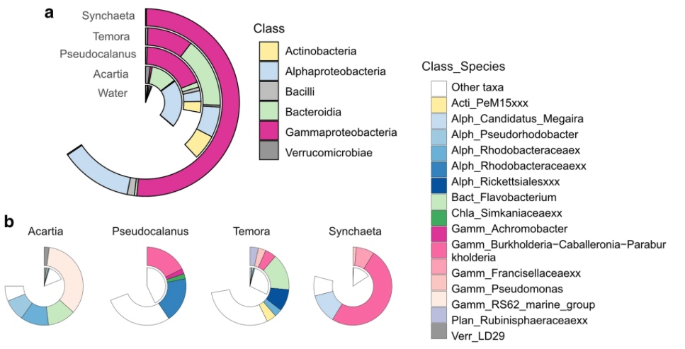 The clupeids shared a similar diet in May when prey diversity was low, composed mainly of the copepods Pseudocalanus and Acartia, whereas three-spined stickleback favoured different copepod species and the rotifer Synchaeta, which was confirmed by a different isotopic value as compared to the two clupeids. In October, all forage fish preyed on diverse zooplankton species, mainly composed of the copepods Acartia, Eurytemora, and Temora, while Pseudocalanus was only important for herring. The observed resource use partitioning between sprat and herring was confirmed by the stable isotope values from October, suggesting that different prey species were targeted during the summer period.